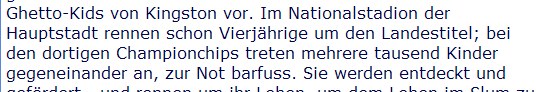 Der ganze Artikel über die jamaikanische Schnelligkeit ließe sich übrigens besser so hinknallen: "Don't exercise and run when you can smoke and fly."